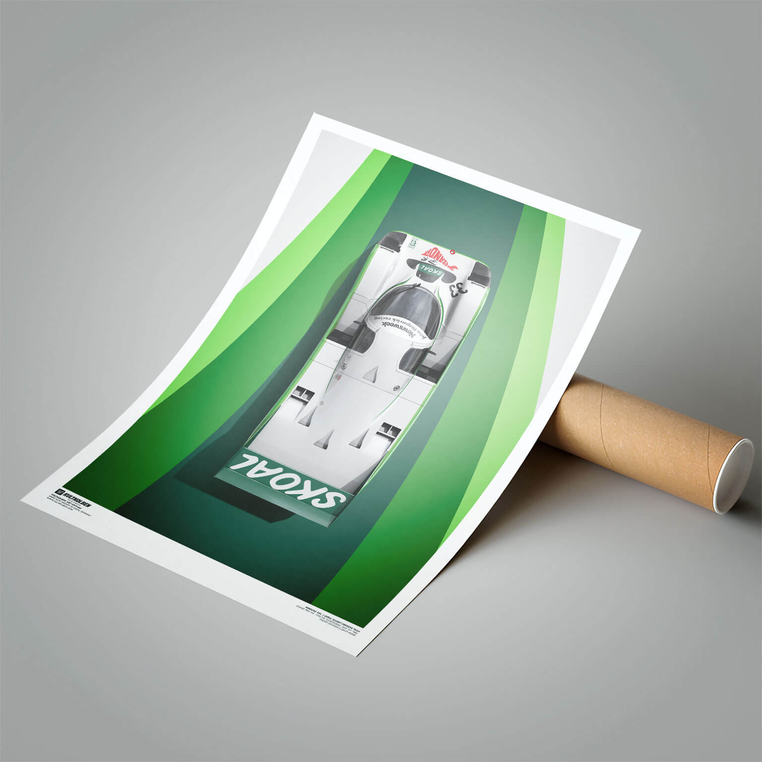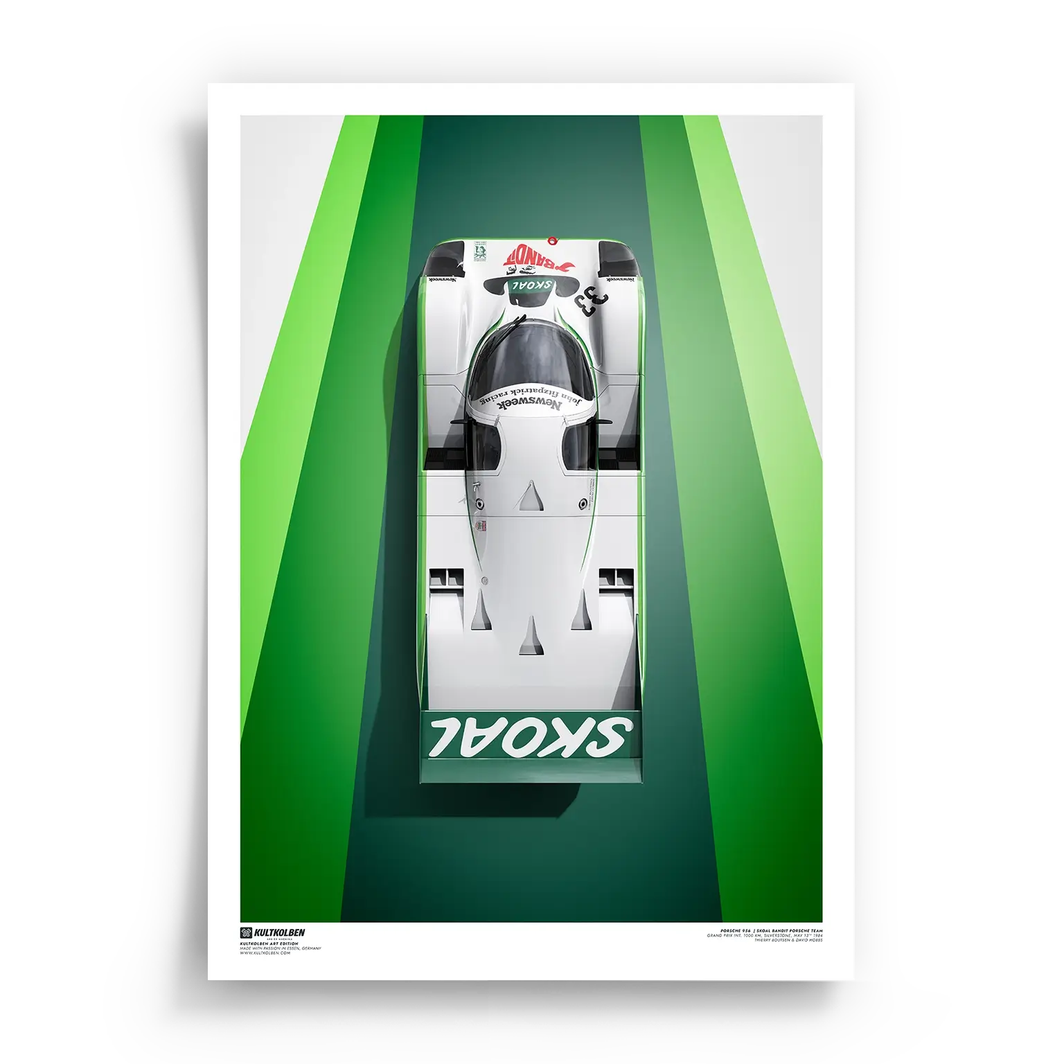 David Hobbs und Thierry Boutsen starteten mit diesem Porsche 956 (Chassis No. 114) für das Skoal Bandit Porsche Team beim 1000-km-Rennen von Silverstone am 13. Mai 1984. Nach etwas mehr als 5 Stunden und 199 gefahrenen Runden belegten sie den respektablen 8. Platz. Den Gesamtsieg errangen Jochen Mass und Jacky Ickx im Werks-Porsche 956.