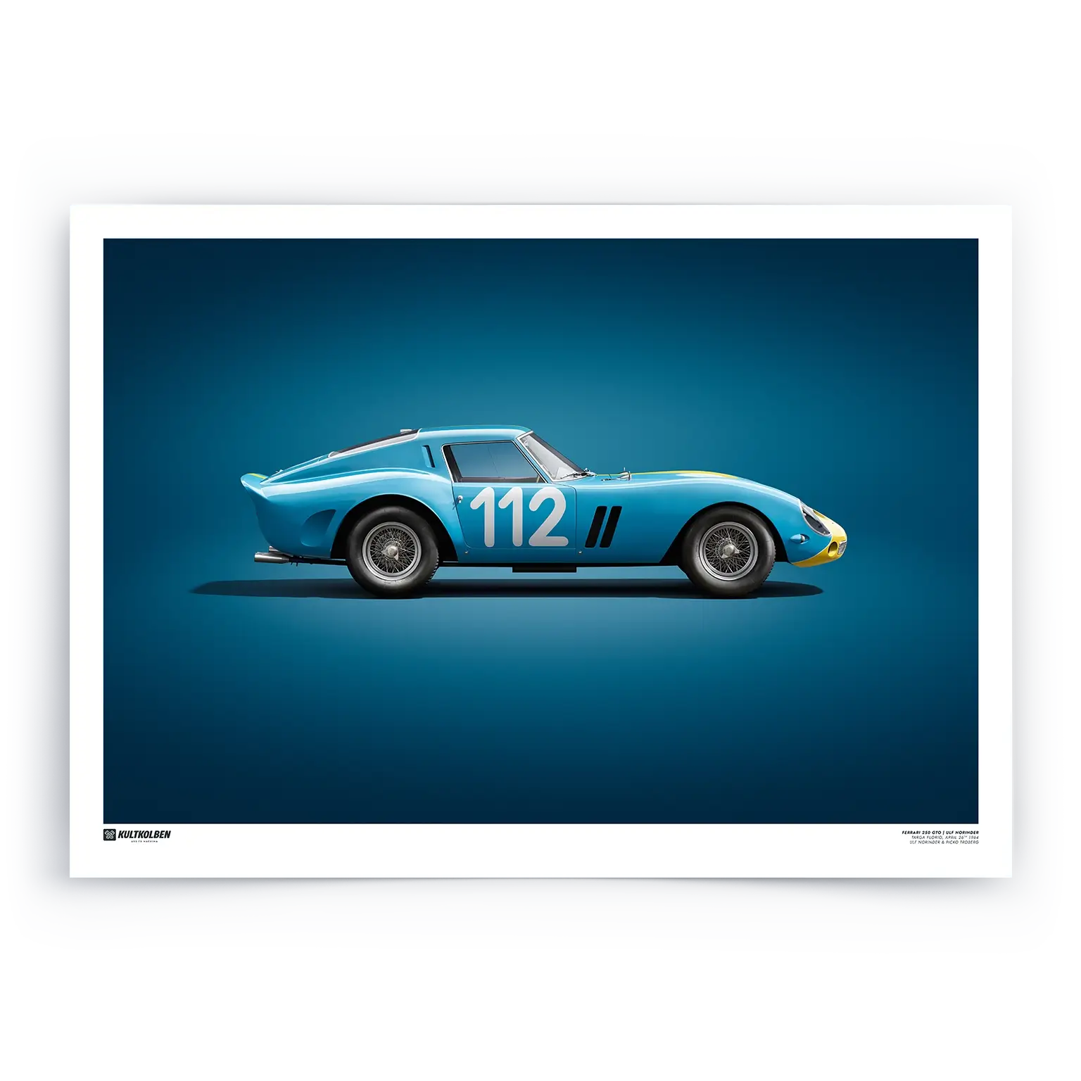 Unser Art Print ist eine Hommage an diese sensationelle Leistung durch Ulf Norinder und sein legendäres Auto: den Ferrari 250 GTO.
