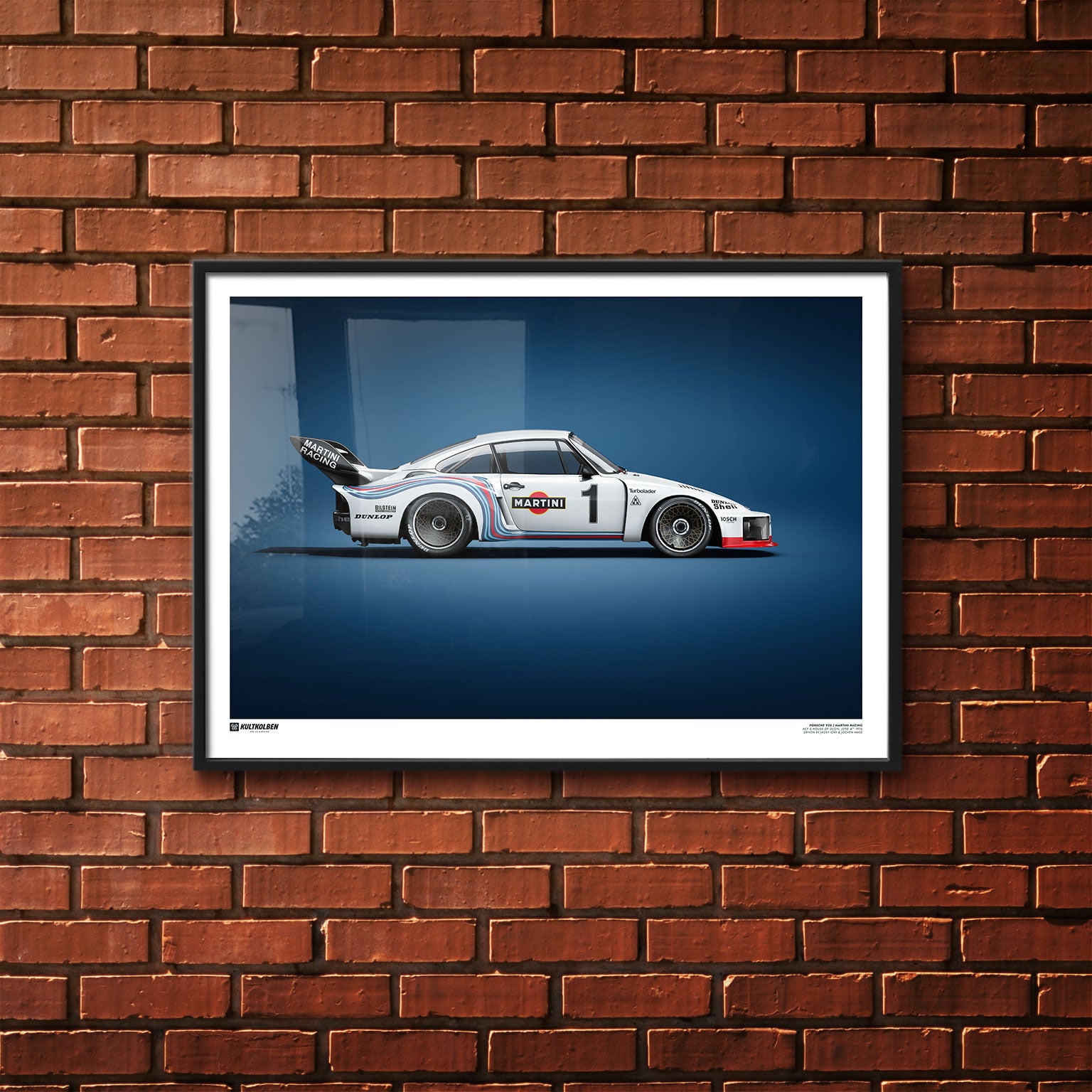 Unser Art Print ist eine Hommage an diesen Triumph von Jacky Ickx und Jochen Mass – und an ihr legendäres Auto: den Martini Porsche 935/76.