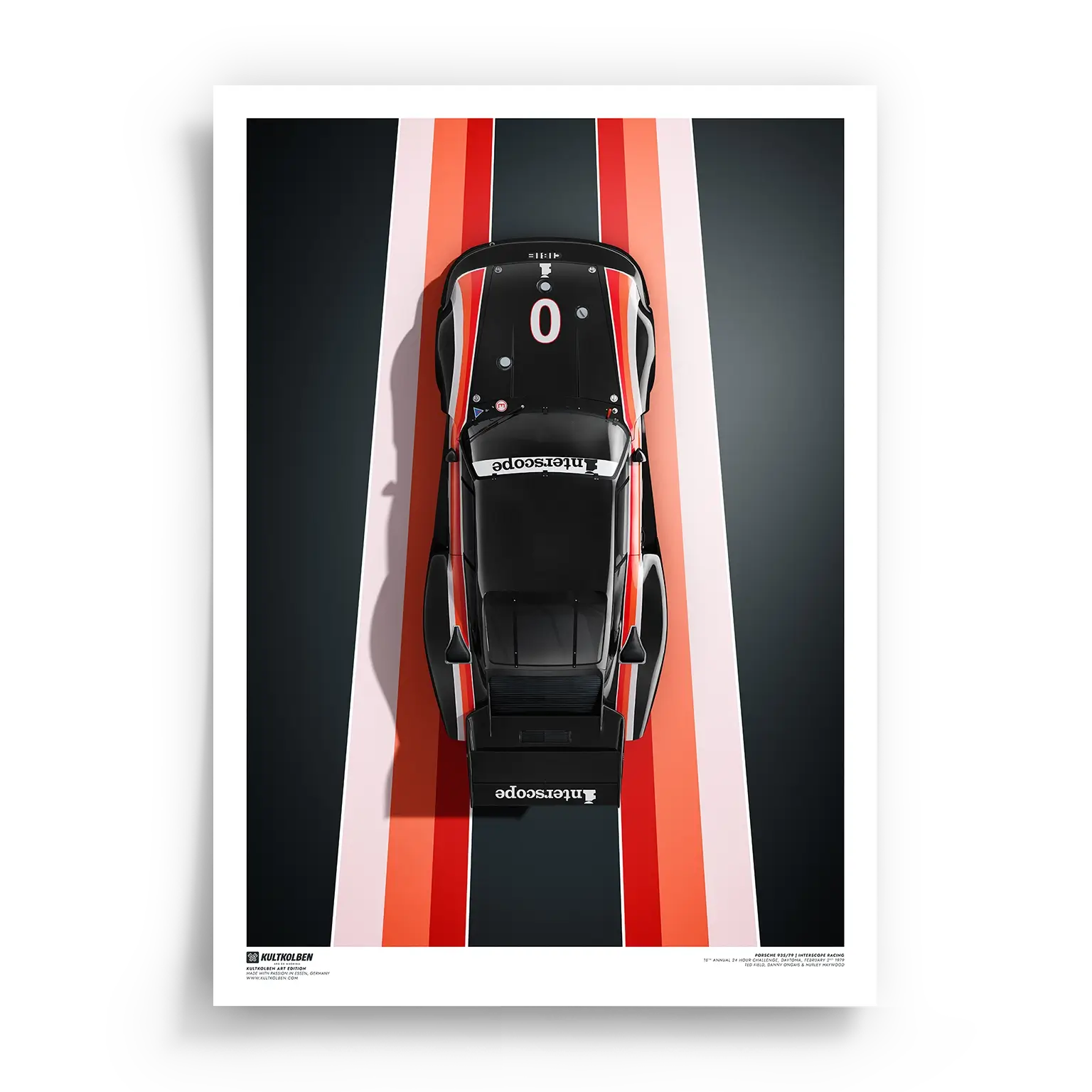 Daytona, 2. Februar 1979: In tiefschwarzer Interscope-Lackierung jagt der Porsche 935/79 von Ted Field, Danny Ongais und Hurley Haywood durch die Nacht – gnadenlos schnell, zuverlässig, siegreich. Das Trio holt beim 18th Annual 24 Hour Challenge den Gesamtsieg und festigt den 935-Mythos auf dem High-Bank-Oval von Daytona.
