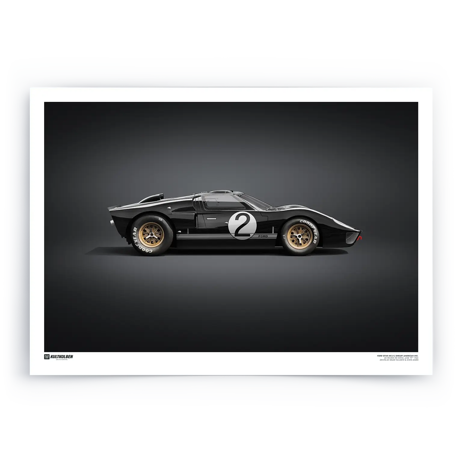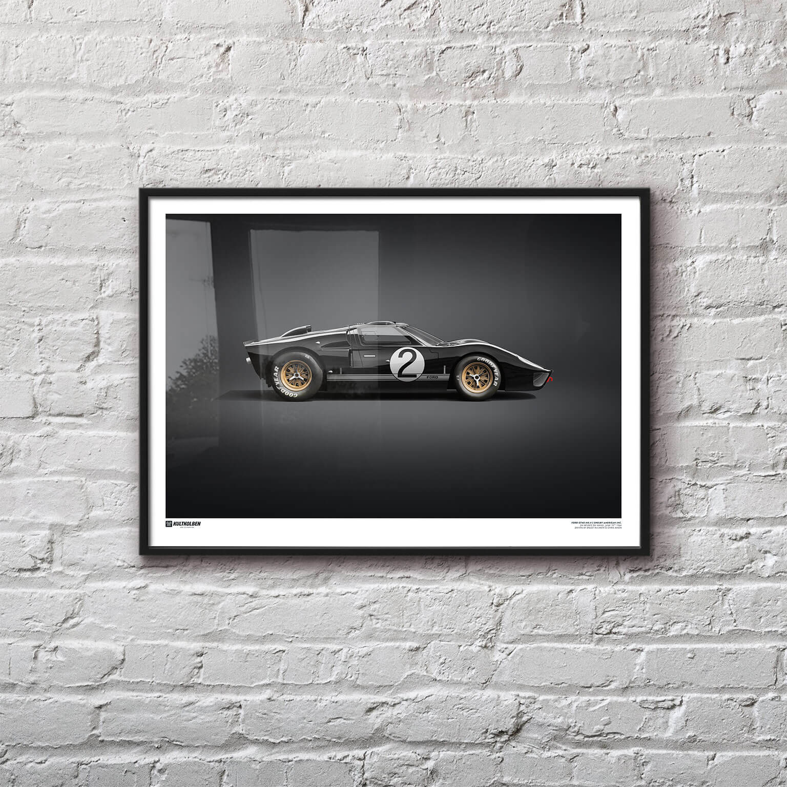 Le Mans, 18.–19. Juni 1966: Bruce McLaren und Chris Amon fahren den schwarzen Ford GT40 Mk II (#2, Shelby-American) zum historischen Gesamtsieg – Mittelpunkt des legendären dreifachen Triumphs von Ford. Im inszenierten Foto-Finish entscheidet die Distanzwertung zugunsten des McLaren/Amon-GT40: strategisch klug, technisch standfest, über 24 Stunden fehlerfrei.