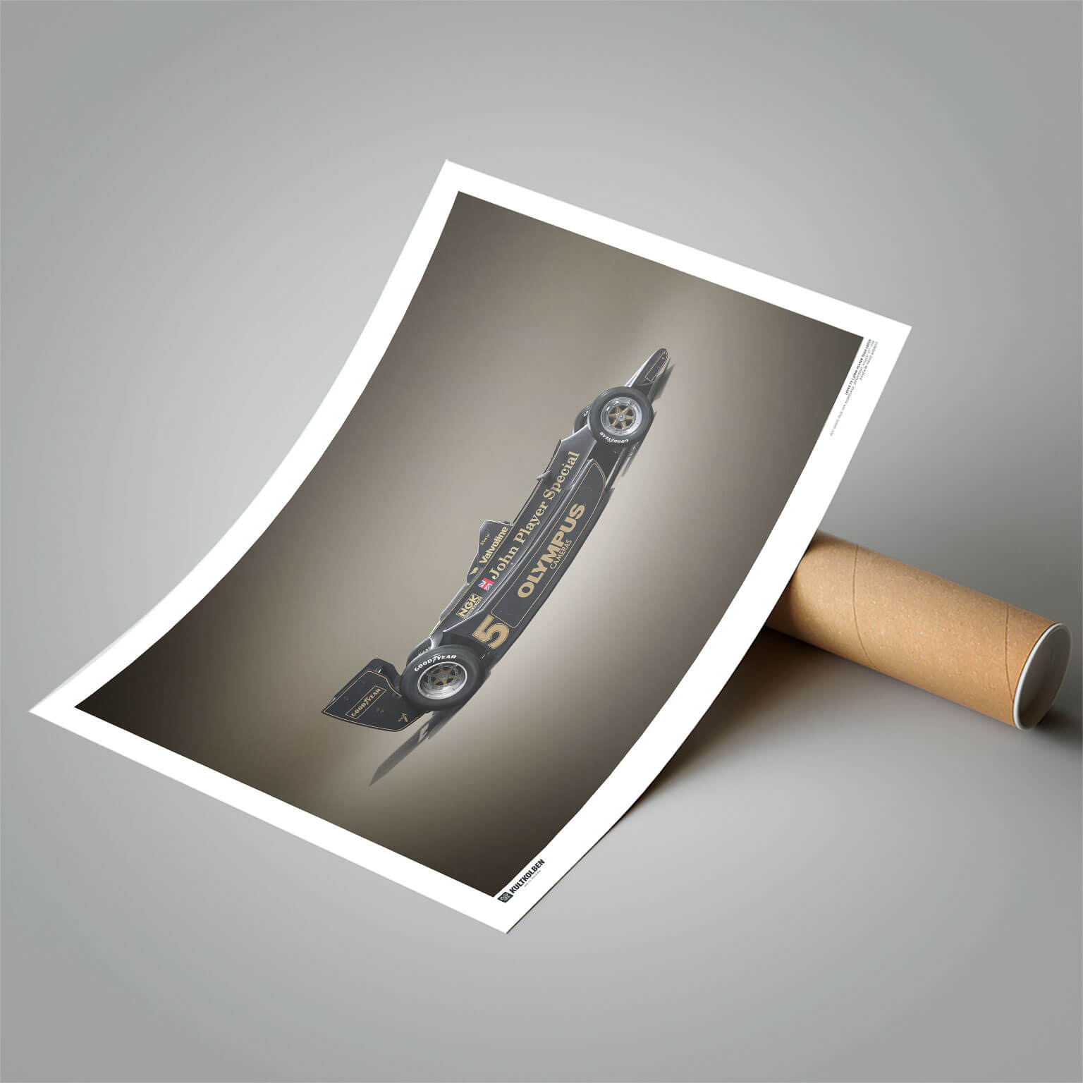 Unser Art Print ist eine Hommage an die sensationelle Saison, an Marion Andretti als Weltmeister 1978 und an sein legendäres Auto: den Lotus 79.
