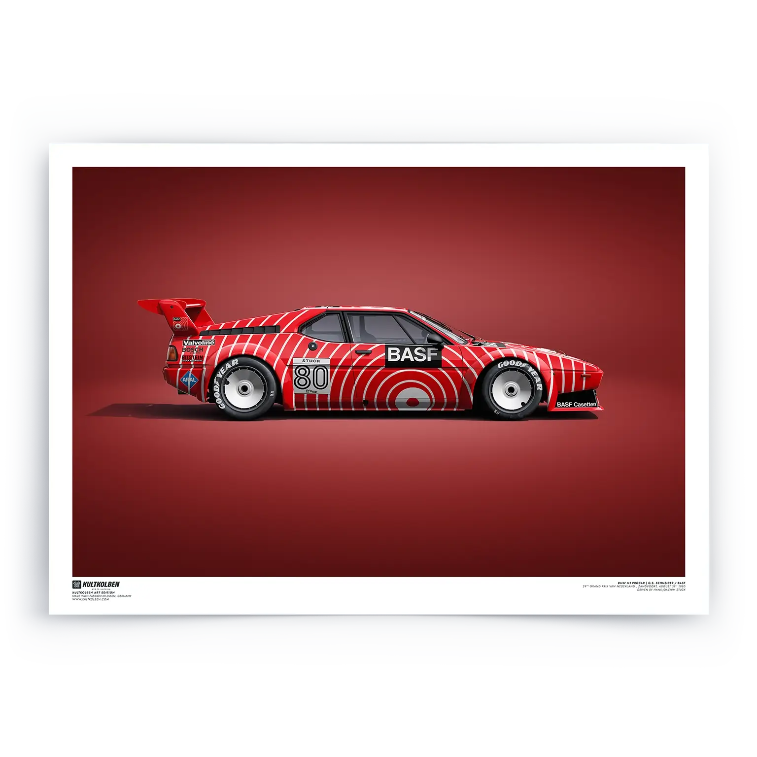 Zandvoort, 31. August 1980: Hans-Joachim Stuck im BMW M1 Procar der G.S. Schneider/BASF riskiert alles und geht auf maximalen Angriff. Doch gleich in Kurve 1 ist Schluss: Ausfall beim achten Procar-Lauf des Jahres, während Nelson Piquet siegt. Stuck bleibt trotz DNF Titelanwärter und Publikumsliebling.